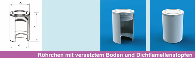 Röhrchen für Eindrückstopfenvarianten mit versetztem Boden
