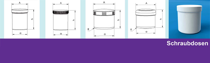 Schraubdosen mit geriffeltem Deckel. Dosenböden gerade und abgerundet. ... weitere Ausführungen: |