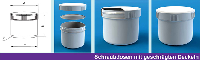 Dosen und Deckel Werkstoff: Polypropylen/ Abdeckscheibenwerkstoff: Polyethylen.