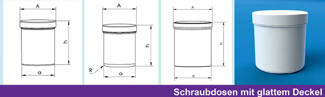 Schraubdosen mit glattem Deckel, Dosenboden gerade. ... weiter zum Datenblatt: |