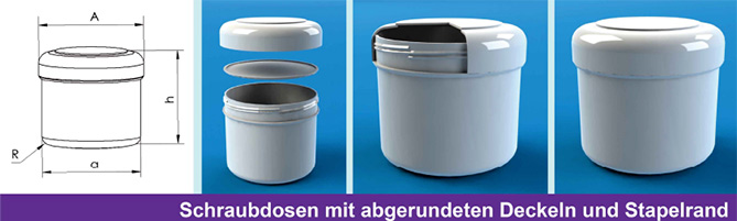 Dosen und Deckel Werkstoff: Polypropylen/ Abdeckscheibenwerkstoff: Polyethylen.